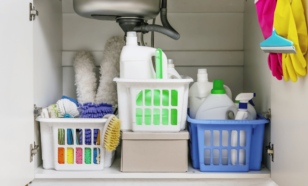 小さな子どもがいる家庭では、洗剤類を高い位置に置く、
